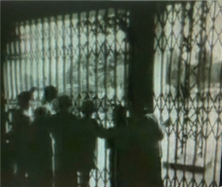 Người dân ngỡ ngàng đứng trong nhà nhìn ra đoàn quân Pháp trên đường phố Hà Nội (Uncle Ho Uncle Sam)